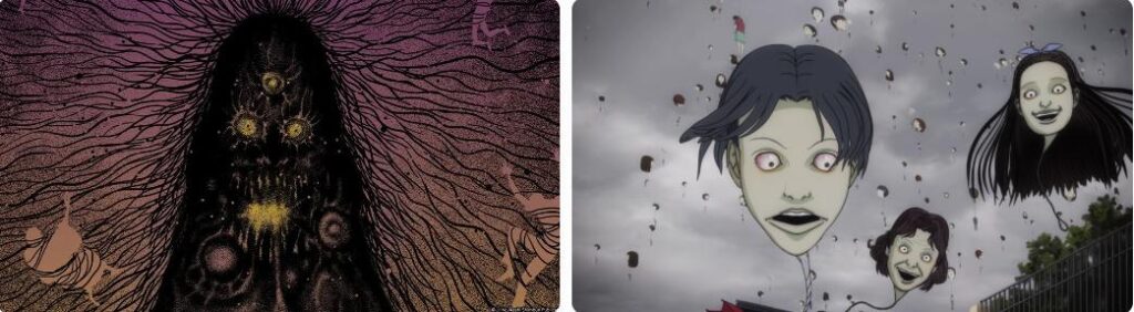 • 理屈のなさ:なぜ気球が人を吊るすのか、なぜ富江が再生するのか——説明をほとんど与えず、観る者に「理解不能な恐怖」を植え付ける。