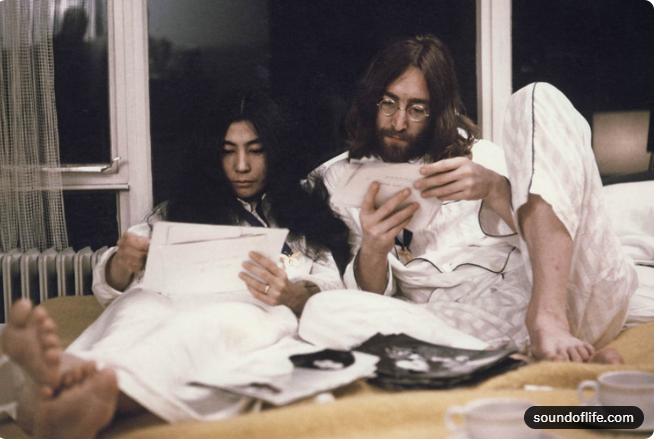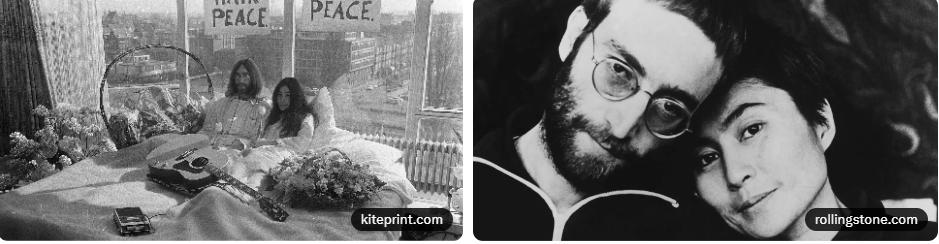 969年3月20日、二人はジブラルタルで結婚。ジョンは前妻シンシアと離婚し、ヨーコは2度目の離婚を経験。ハネムーンではアムステルダムのホテルで「Bed-In for Peace」を行い、ベッドに横たわり平和を訴えました。これはベトナム戦争に対する抗議で、記者を招き「Give Peace a Chance」を録音。結婚後、二人はプラスティック・オノ・バンドを結成し、音楽を超えた活動を展開。「Acorn Peace」や「WAR IS OVER!」キャンペーンで平和を推進しました。
